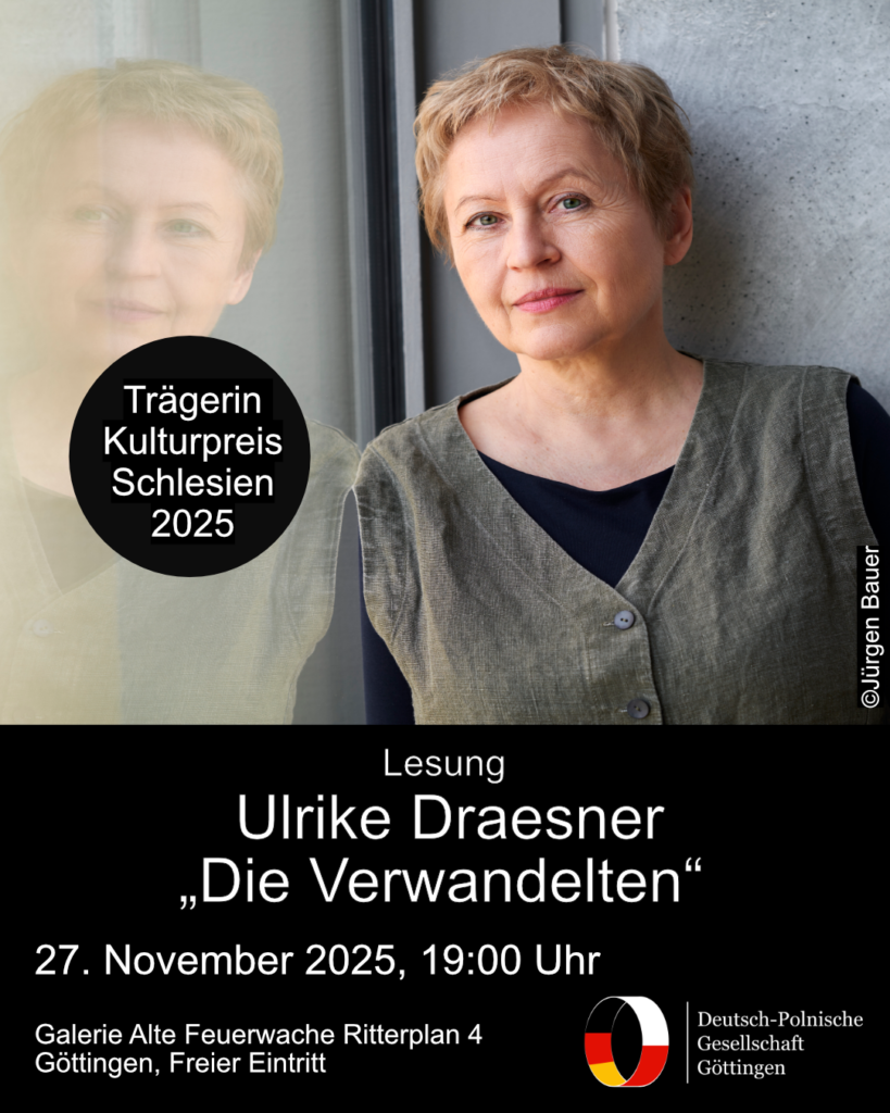 Autorenlesung mit Ulrike Draesner, Trägerin des Kulturpreises Schlesien 2025, zu „Die Verwandelten“ am Donnerstag, den 27 November 2025, 19 Uhr, Galerie Alte Feuerwache, Ritterplan 4, 37073 Göttingen